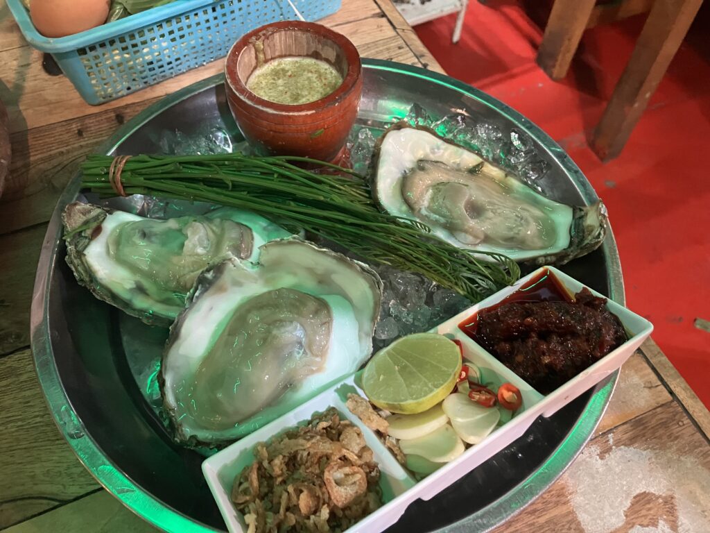 生ガキは普通にアロイ!日本よりもコスパよし!ムーガタもこの店は普通にうまくて、お肉もだがイカが最高においしかった!!